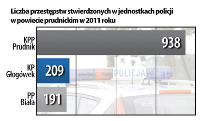 Praca policji najlepiej prezentuje się na filmach kryminalnych, czasem wrażenie zrobi też wyjątkowo spektakularna akcja przeprowadzona w rzeczywistości. Większość jednak działań stróżów prawa jest mało widowiskowa, warto zatem raz na jakiś czas zaznajomić się z danymi statystycznymi, dotyczącymi bezpieczeństwa i porządku publicznego na terenie powiatu prudnickiego. Podstawą do tego jest informacja przedstawiona przez komendanta Komendy Powiatowej Policji w Prudniku na ostatniej sesji Rady Powiatu. Dotyczy ona sytuacji zdarzeń na terenie naszego powiatu w 2011 roku.