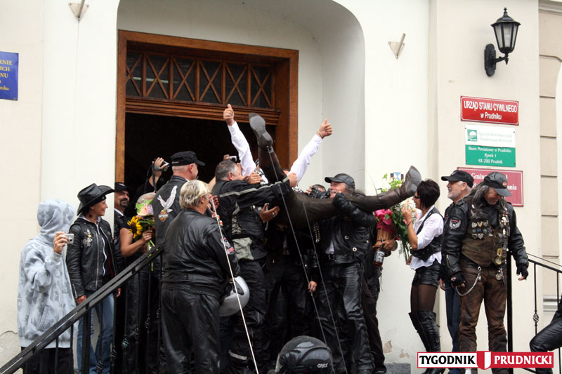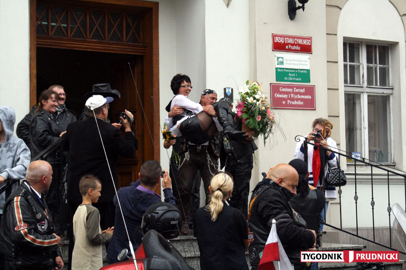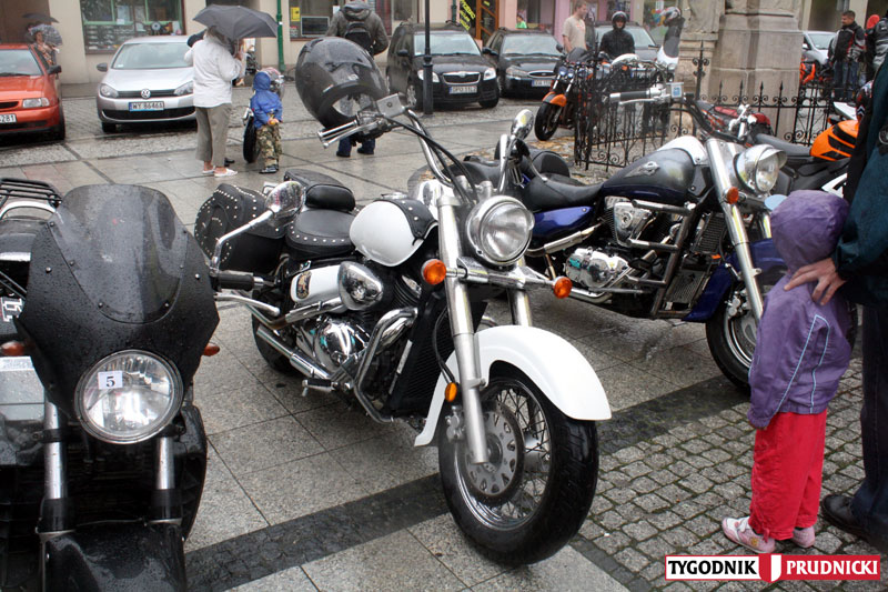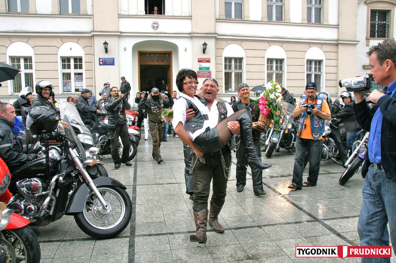 Już po raz piąty entuzjaści dwóch kółek spotkali się na zlocie w Prudniku. Tradycyjnie, w niedzielę przeparadowali przez nasz Rynek. Tym razem parada była wyjątkowa, bowiem dwoje z uczestników zlotu zaplanowało tego dnia swój ślub w prudnickim Urzędzie Stanu Cywilnego - radości nie popsuła nawet nie dopisująca tego dnia aura. FOTO 1-16: J. Tomaszewicz, 17-27 A. Dereń.