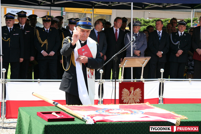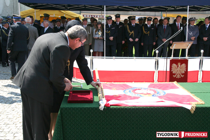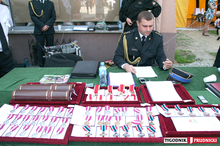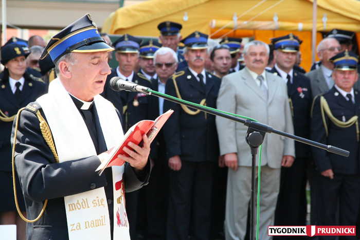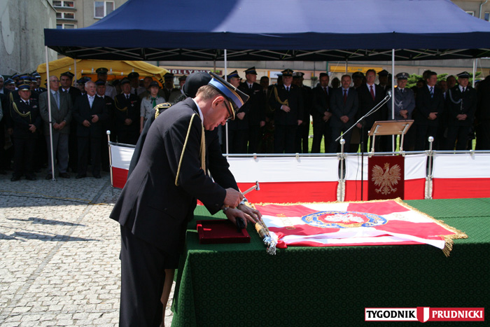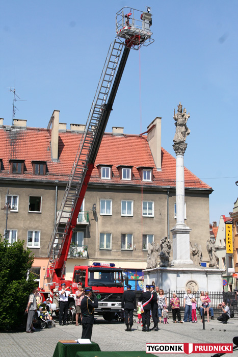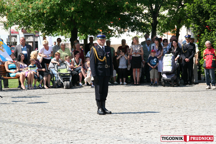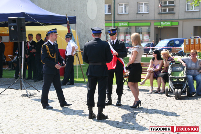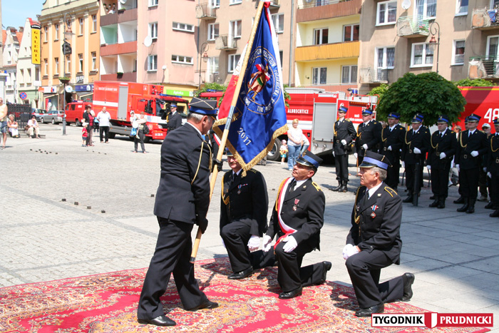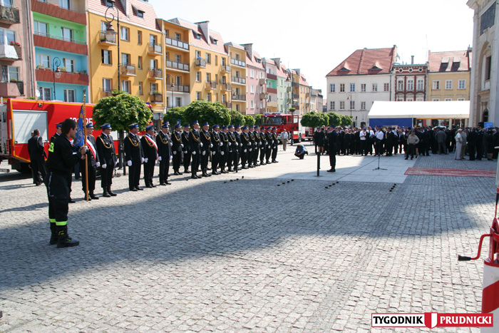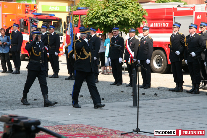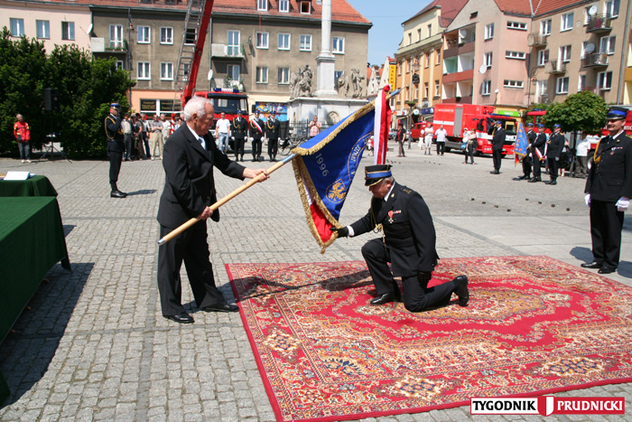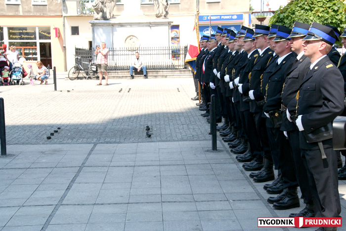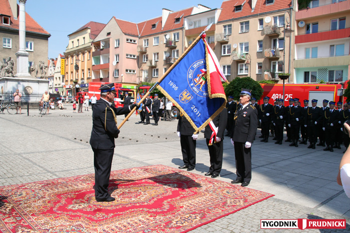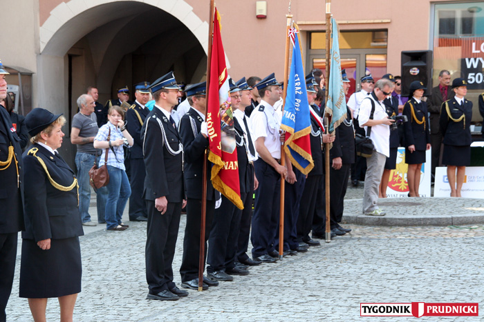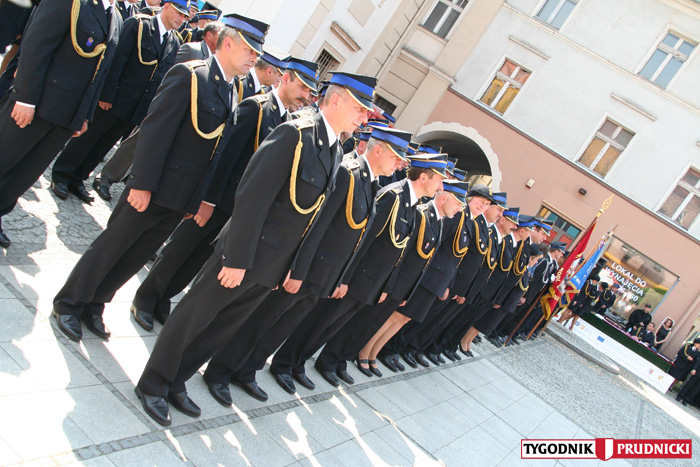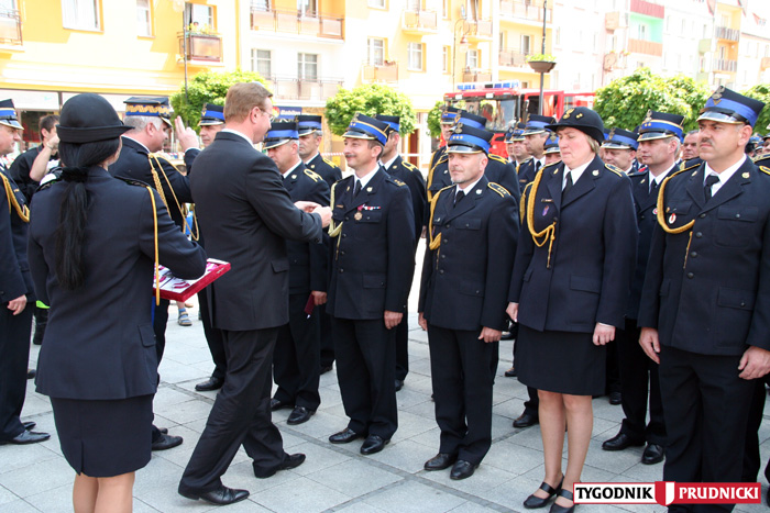 20 czerwca na prudnickim Rynku odbyły się obchody wojewódzkie Dnia Strażaka. Blisko 100 strażaków z całej Opolszczyzny odebrało awanse na wyższe stopnie, medale nagrody i wyróżnienia. Istotnym punktem obchodów było wręczenie sztandaru dla Zarządu Wojewódzkiego Związków Emerytów i Rencistów Straży Pożarnej. FOTO: Damian Wicher